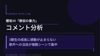 櫻坂46「五月雨よ」MV公開から24時間のYouTubeコメント3163人分を分析。山﨑天センターへの集中と、渡邉理佐の卒業シングルへの感動、理佐×ゆいぽんシンメがシーン1位を獲得した構造をデータで可視化しています。